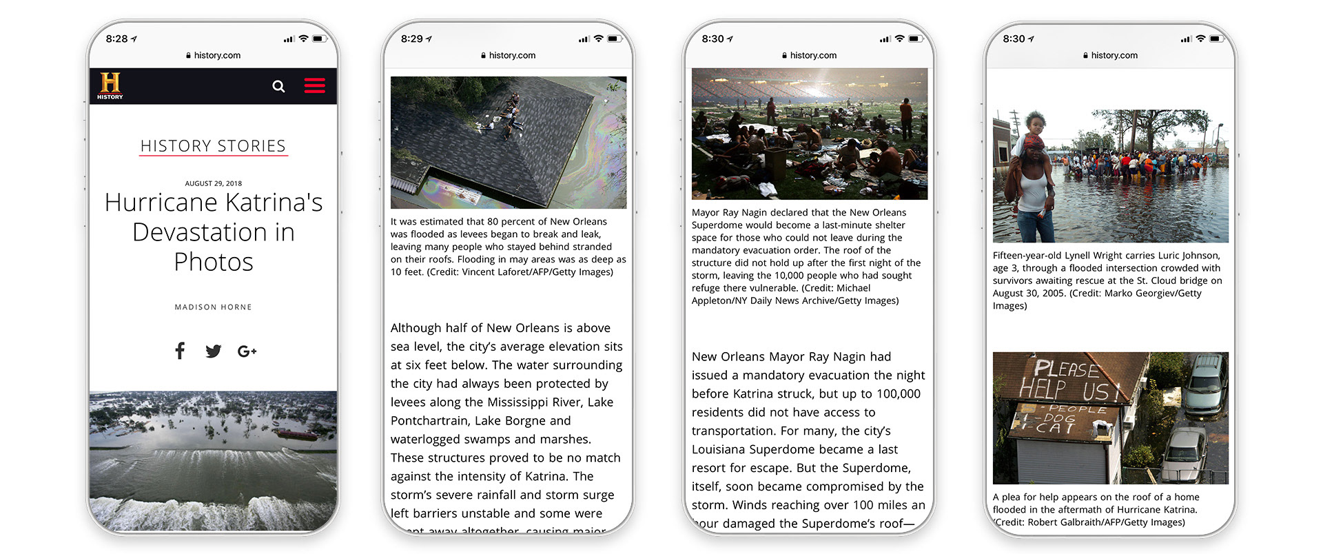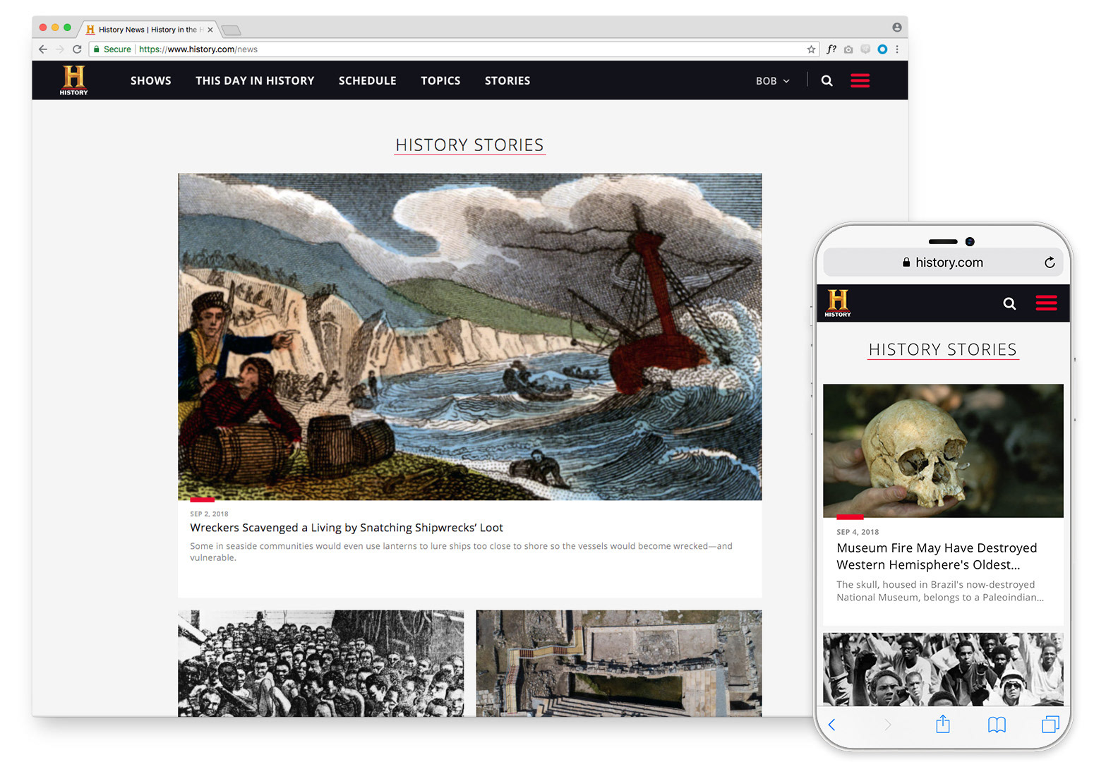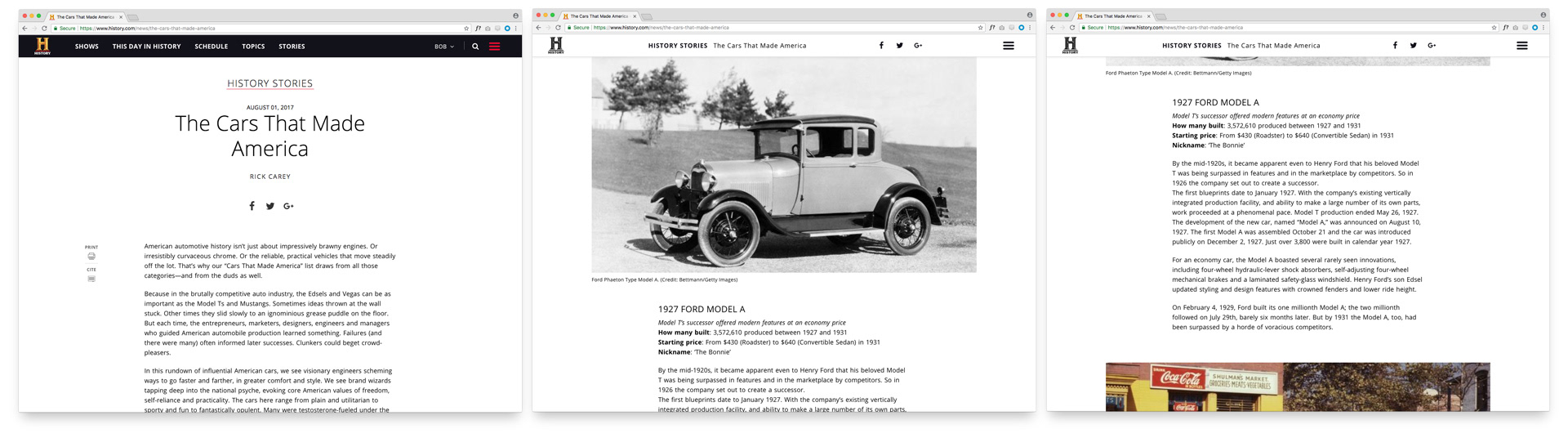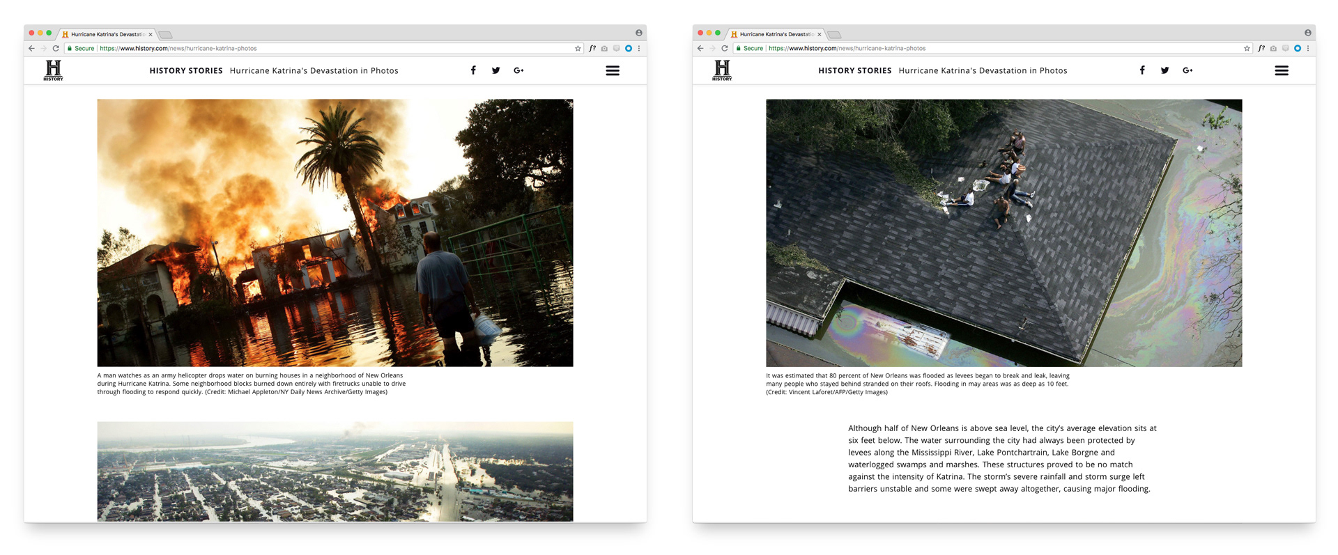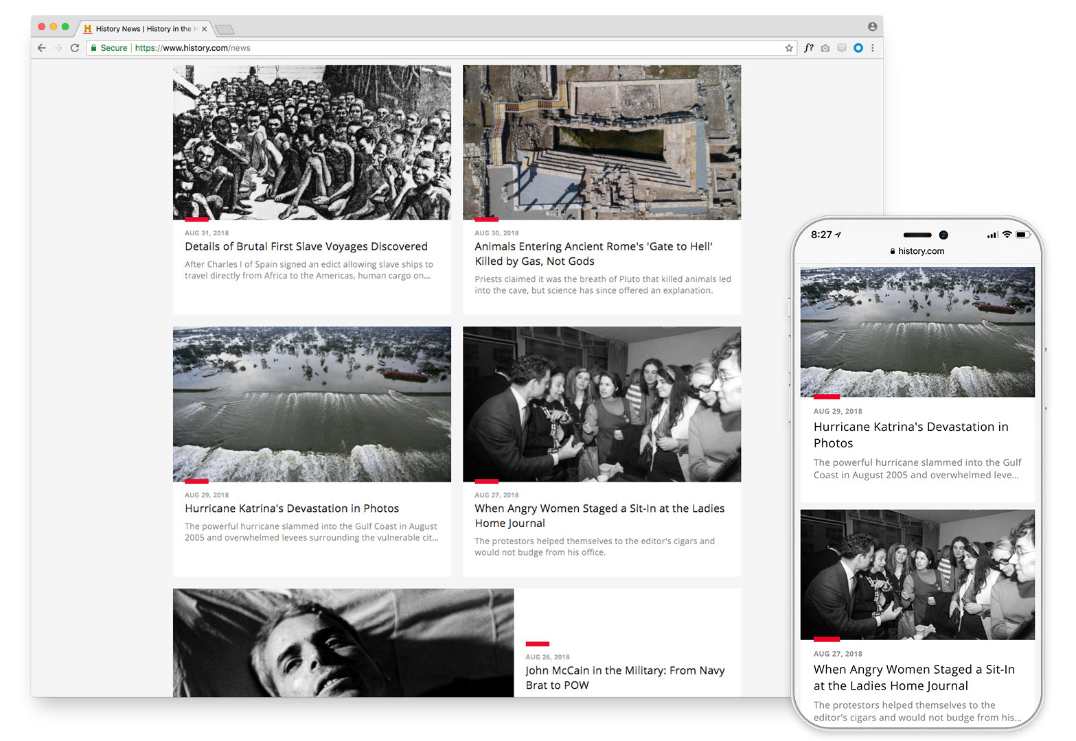 The entry point to the stories landing page allows users to visually browse the content available with big, bold photography leading the way. Everything we designed was responsive, and every viewport was covered.