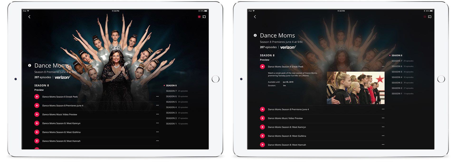 The goal: Increase video time spent and average revenue per user. The strategy: redefine and re-imagine the watching experience and release a new version of our apps that placed users and their behaviors in the spotlight. The challenge was to do it at scale: across multiple platforms, and across multiple brands. The apps allow people to stream their favorite TV shows and watch full episodes and exclusive clips on the go. Viewers are able to create a profile to continue watching episodes where they left off on any device. By signing in with their TV provider they gain full access to the entire library of content. If users don't have a TV provider, they can gain access to a limited number of episodes by creating a profile. The apps also feature Nielsen's proprietary measurement software - allowing us to capture TV ratings and contribute to overall corporate revenue goals.