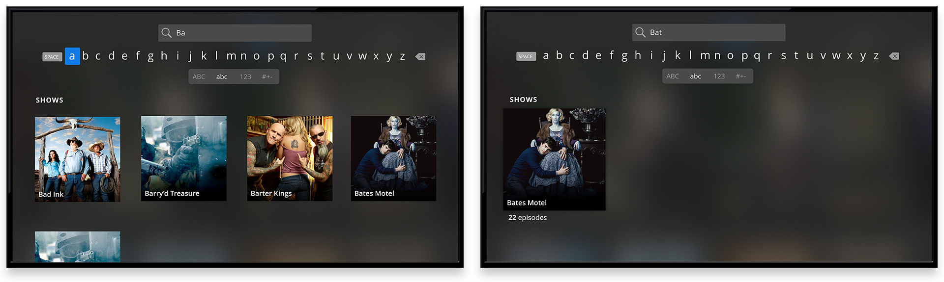 Search results were automatically filtered based on what a user was typing in the search entry field. A focused result would show as the search entry narrowed the scope of available shows.